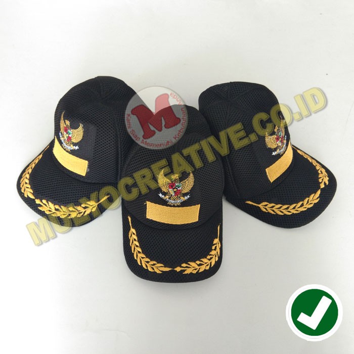 Topi Bupati Camat Kades Topi Bahan Jaring Bermotif Padi Dan Kapas Warna Hitam